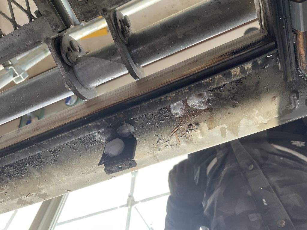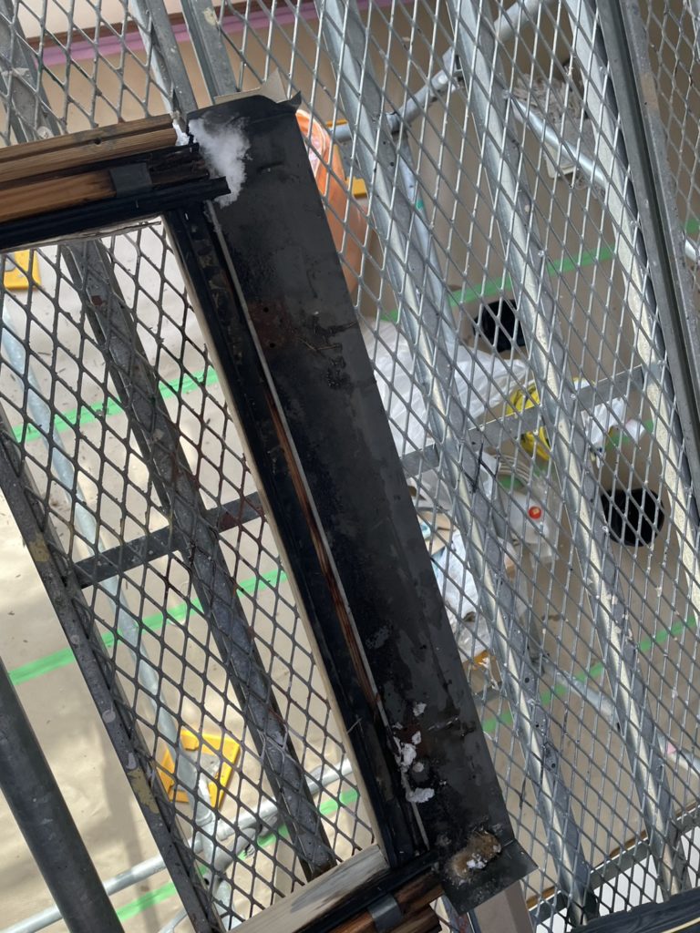 内部が腐食したことにより、ガラスを支える部分が脱落して下がってしまったんですね